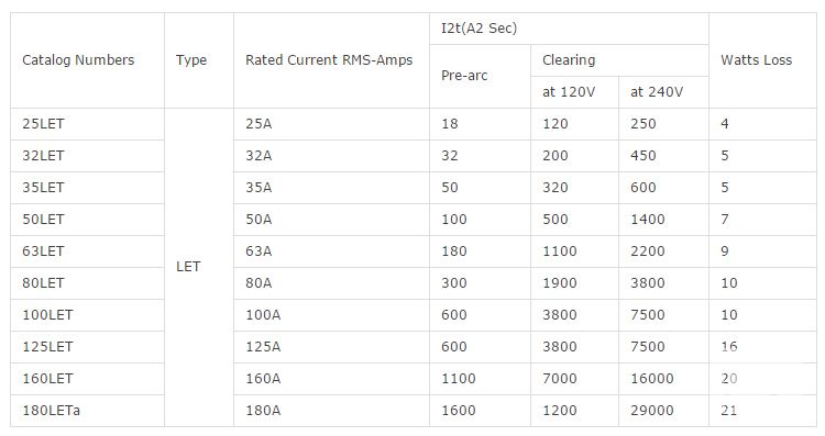 • Note: 7LET, 10LET, 12LET and 16LET are available for replacement purposes on existing equipment.