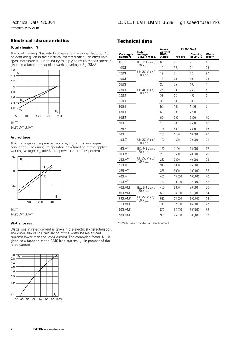 • Low arc voltage and low energy let-through (I2t)