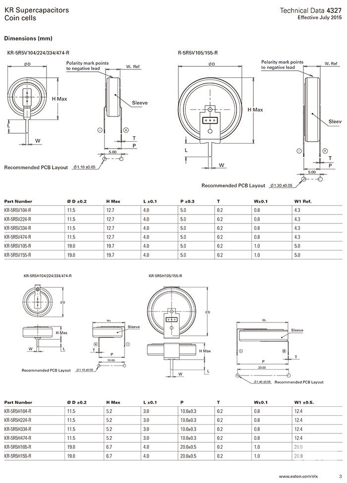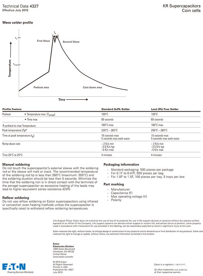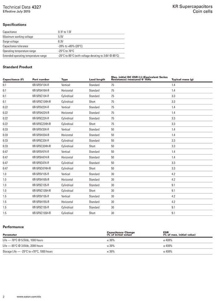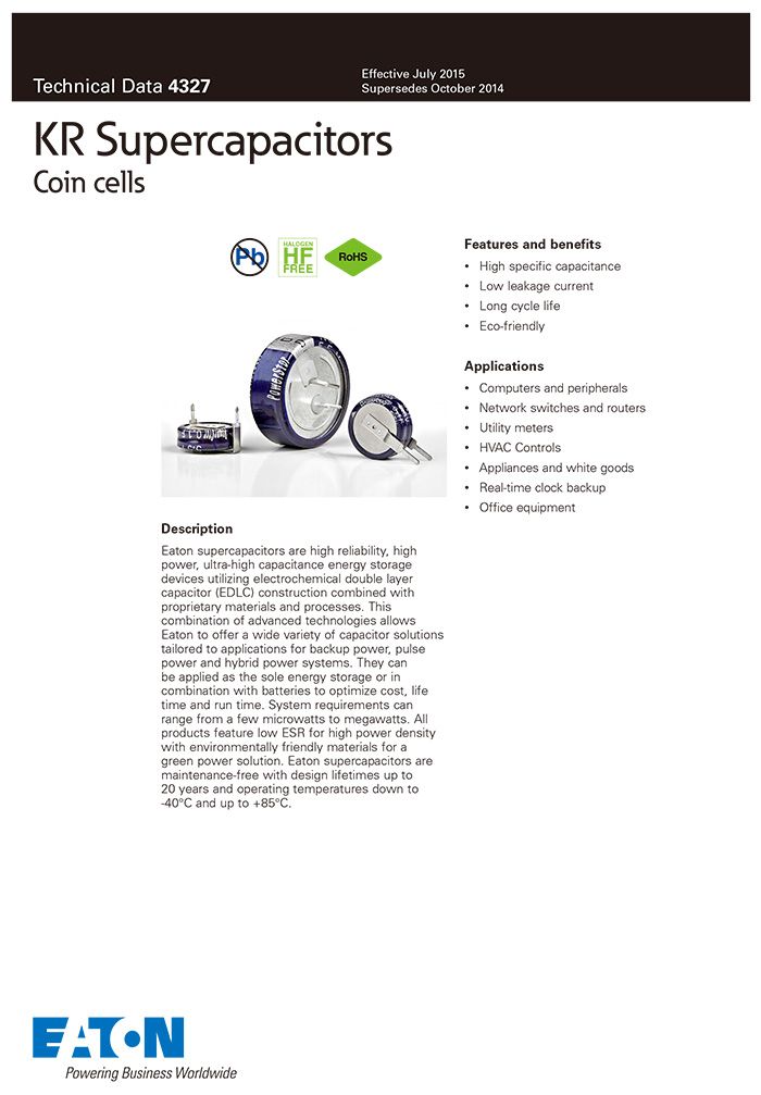 Bussmann KR系列超级电容