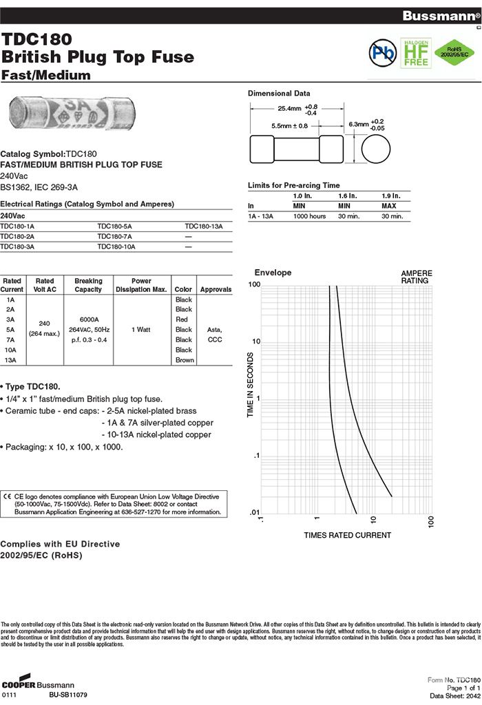 Bussmann GBB 绿色陶瓷管 250Vac 电流陶瓷保险丝