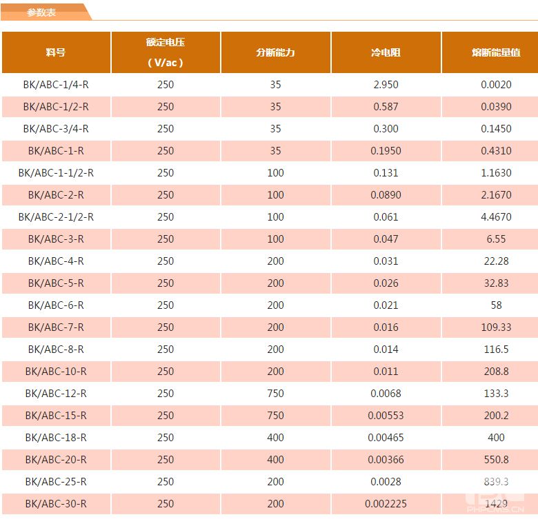 bussmann ABC系列带引线陶瓷保险丝