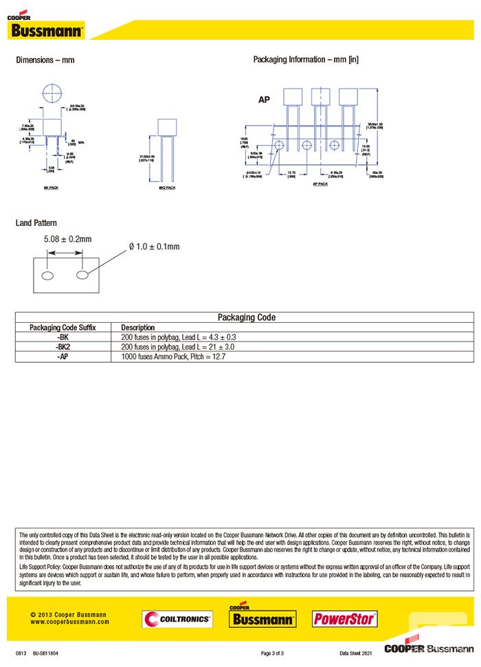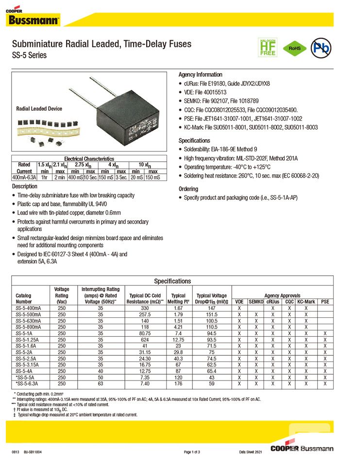 bussmannn SR-5H系列 250Vac 高分断 微型塑封保险丝