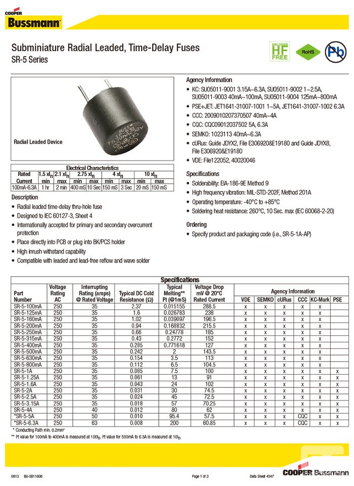 BUSSMANN正品 SR-5F系列 250V 小黑豆 圆形保险丝