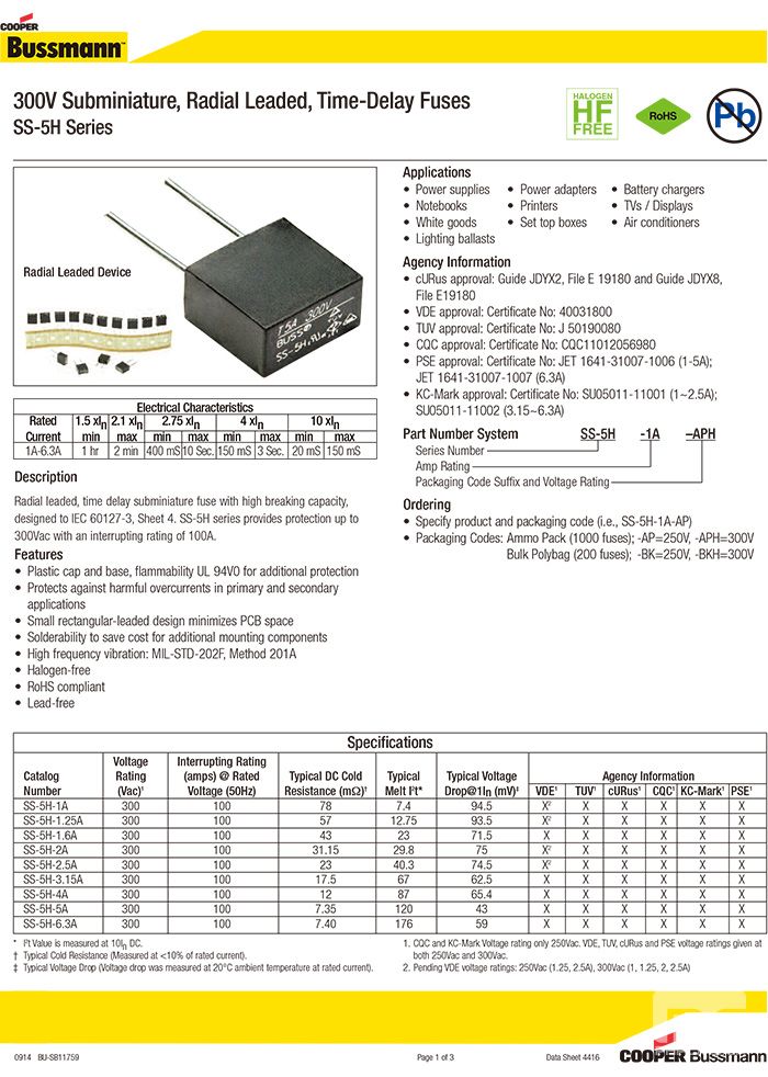 bussmann原装 SS-5H系列 方块保险丝